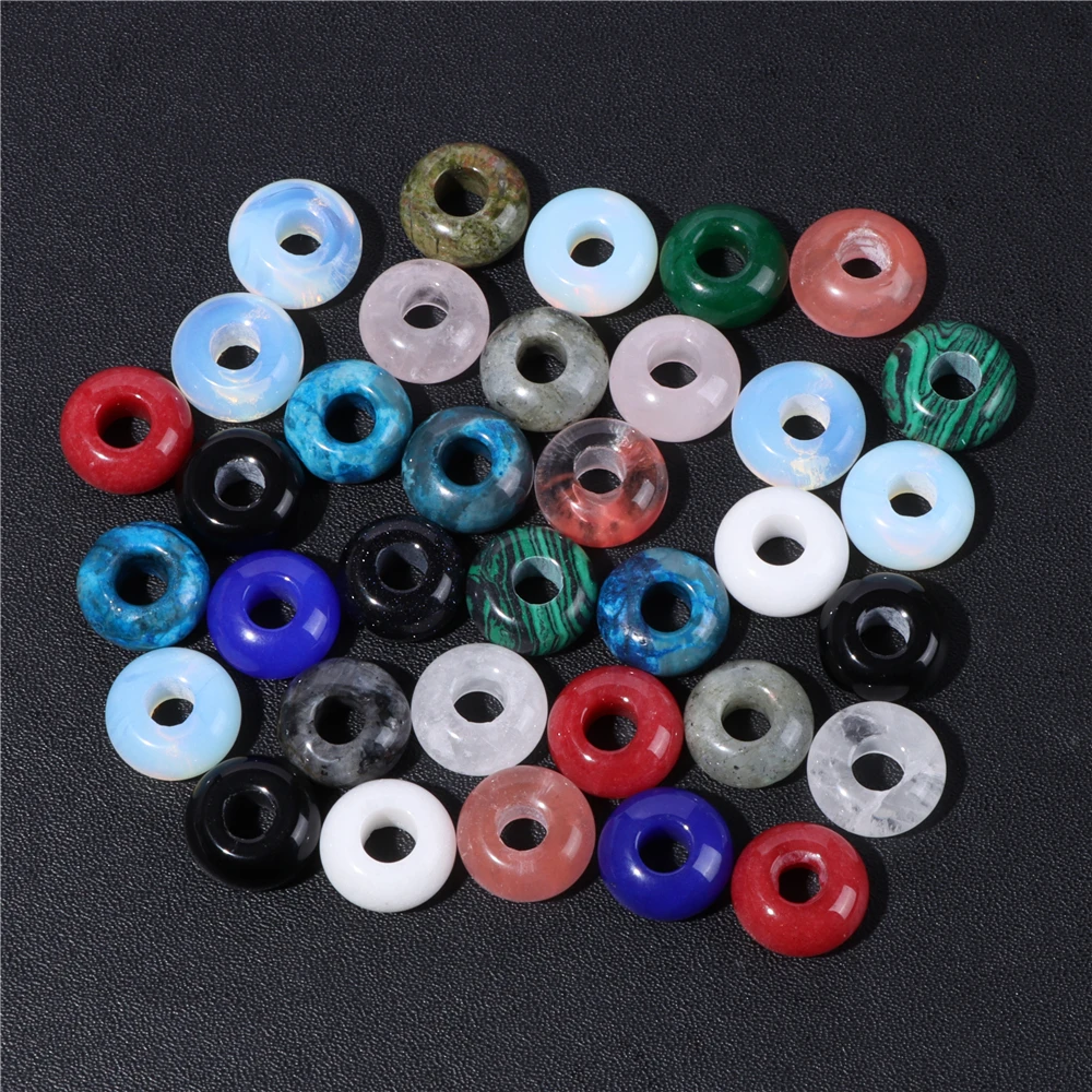 5Pcs Stone Charms Pendant Spacer Round Big Hole Beads For Jewelry Making Fit Necklace Bracelet DIY Findings 14MM Hole Size 5MM