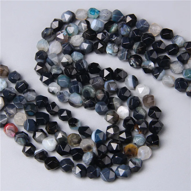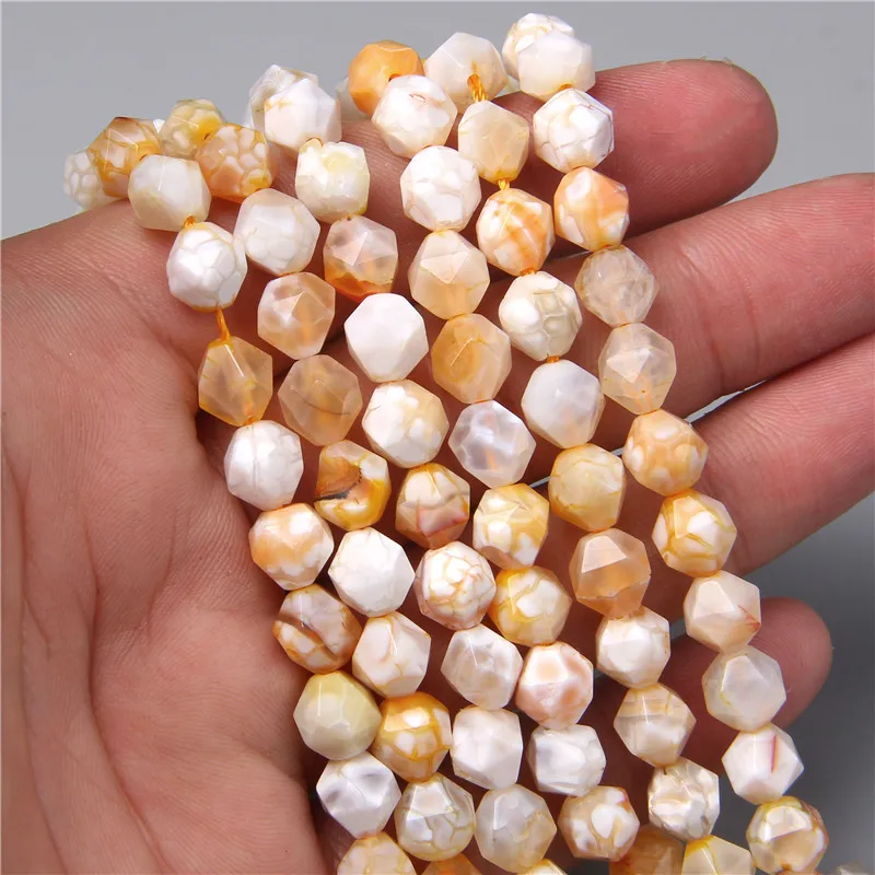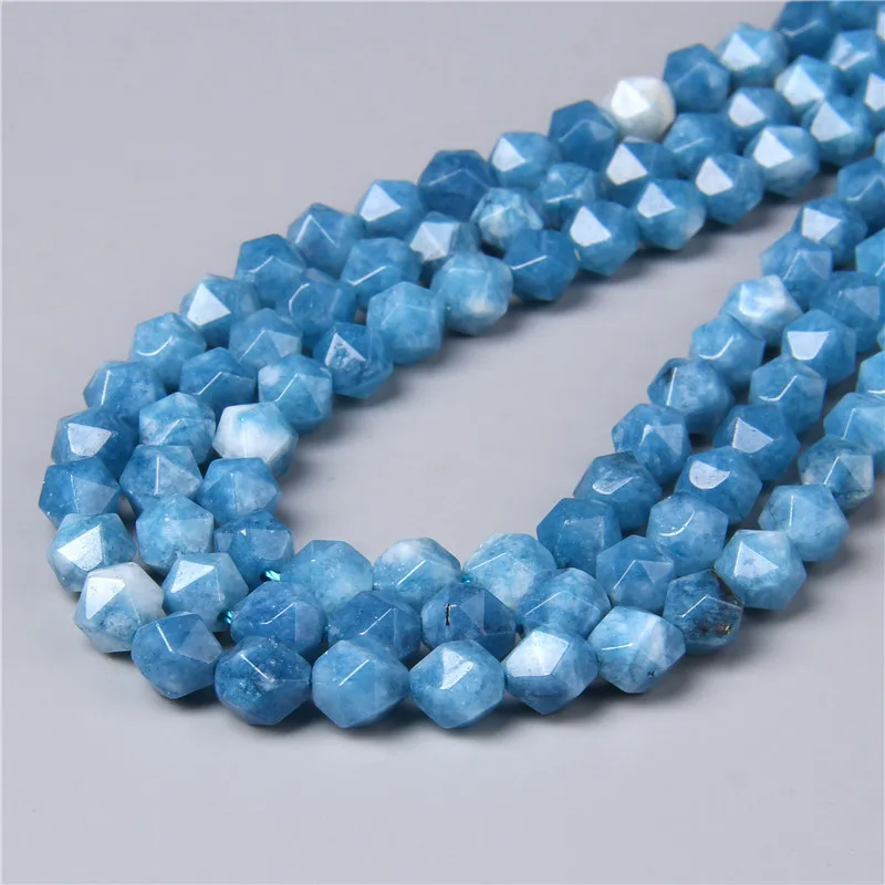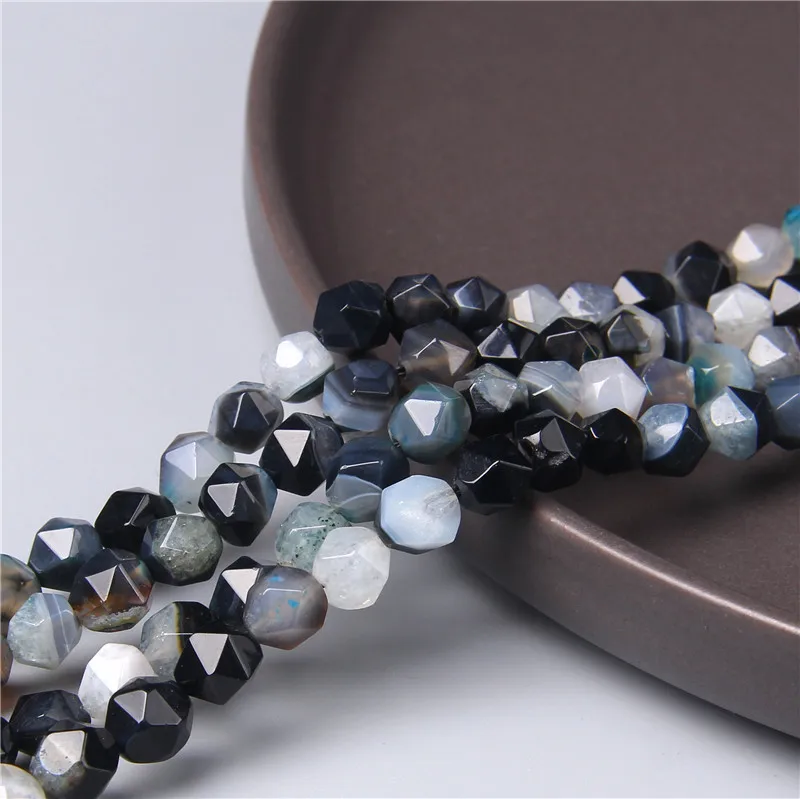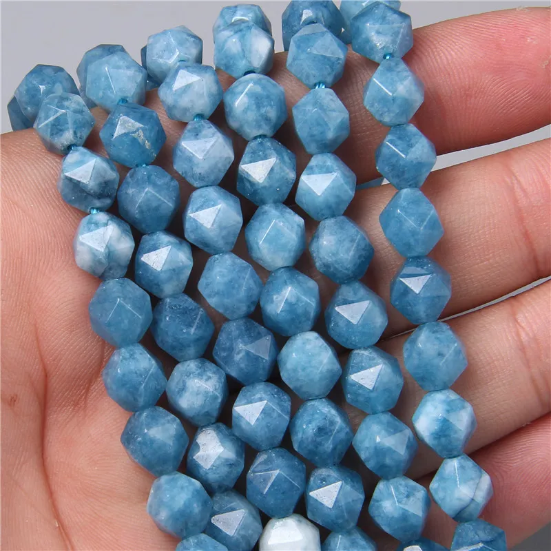 8MM Natural Stone Faceted Chalcedony Agates Jades Beads Loose Spacer Beads For Jewelry Making 15inches DIY Bracelet Wholesale
