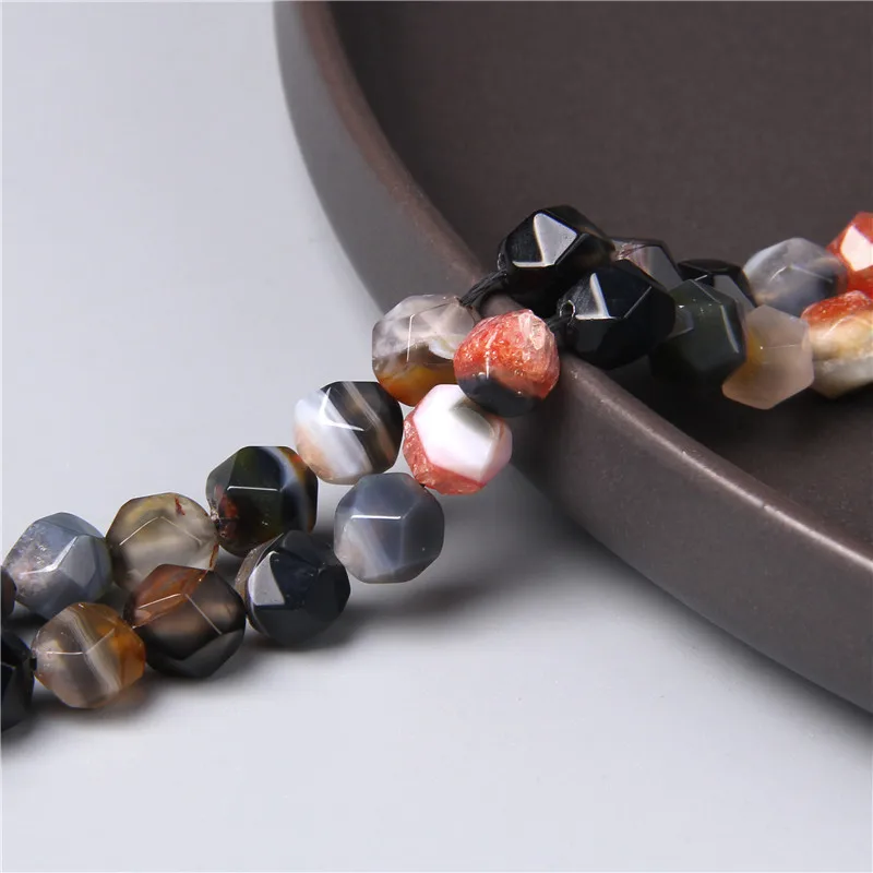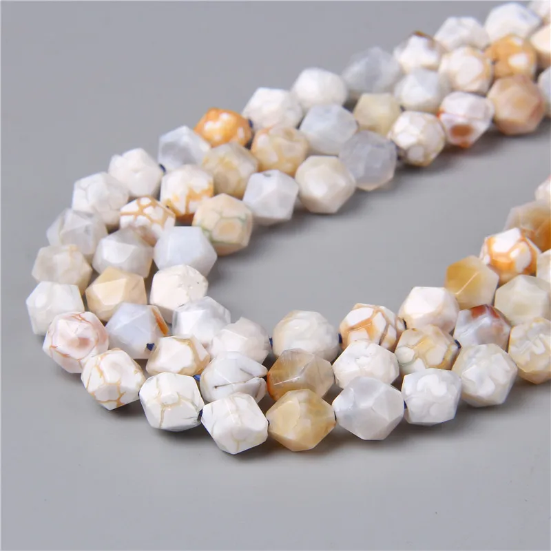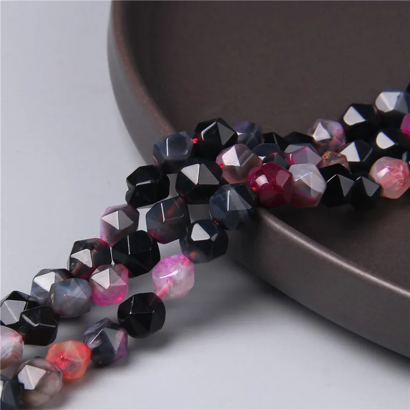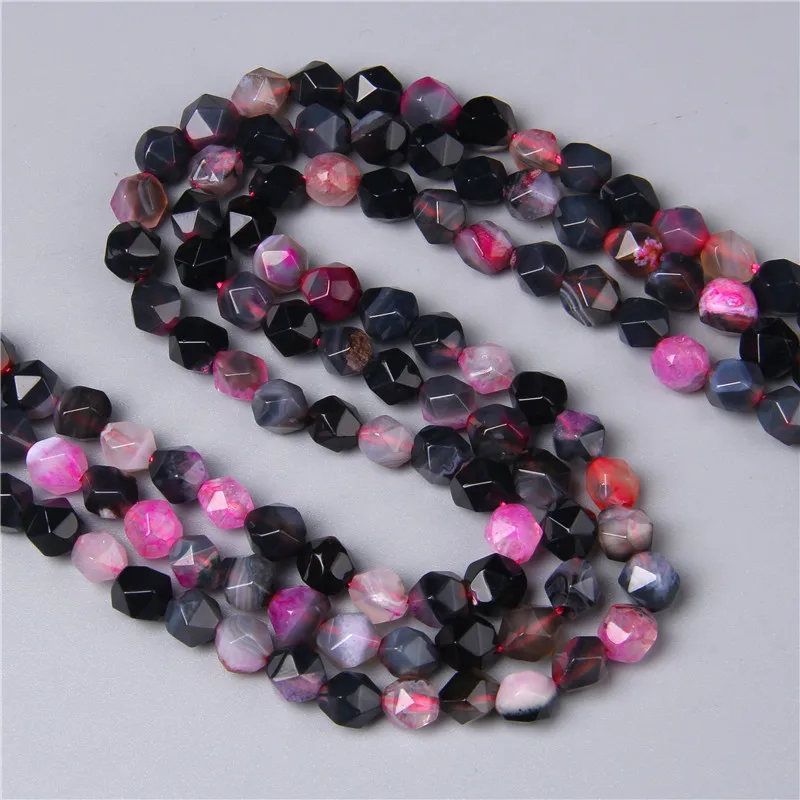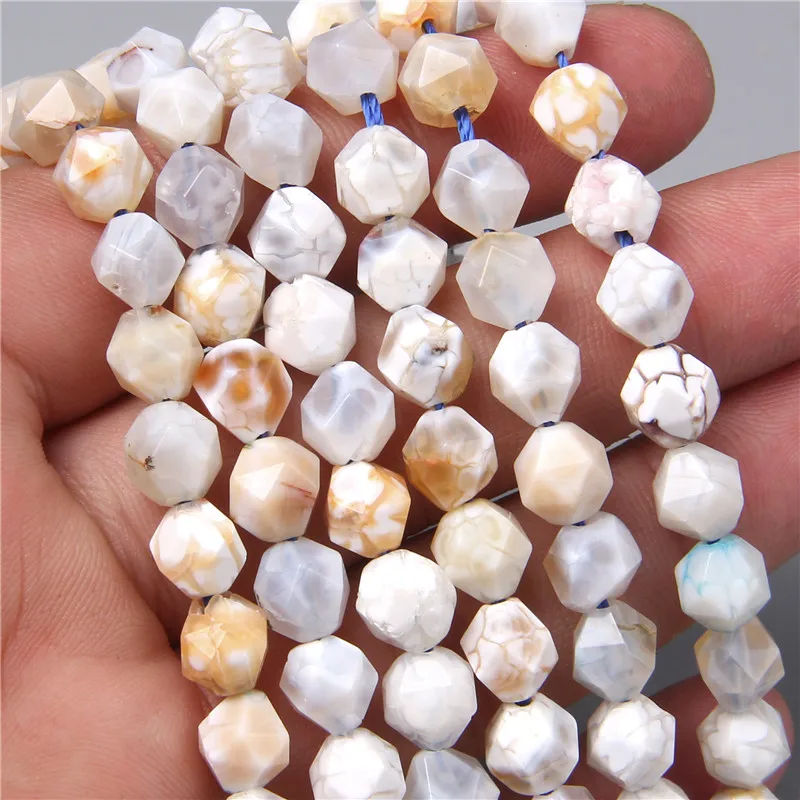 8MM Natural Stone Faceted Chalcedony Agates Jades Beads Loose Spacer Beads For Jewelry Making 15inches DIY Bracelet Wholesale