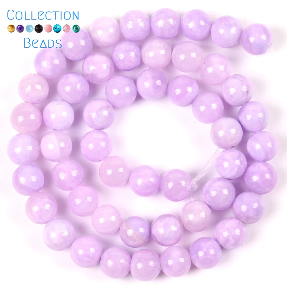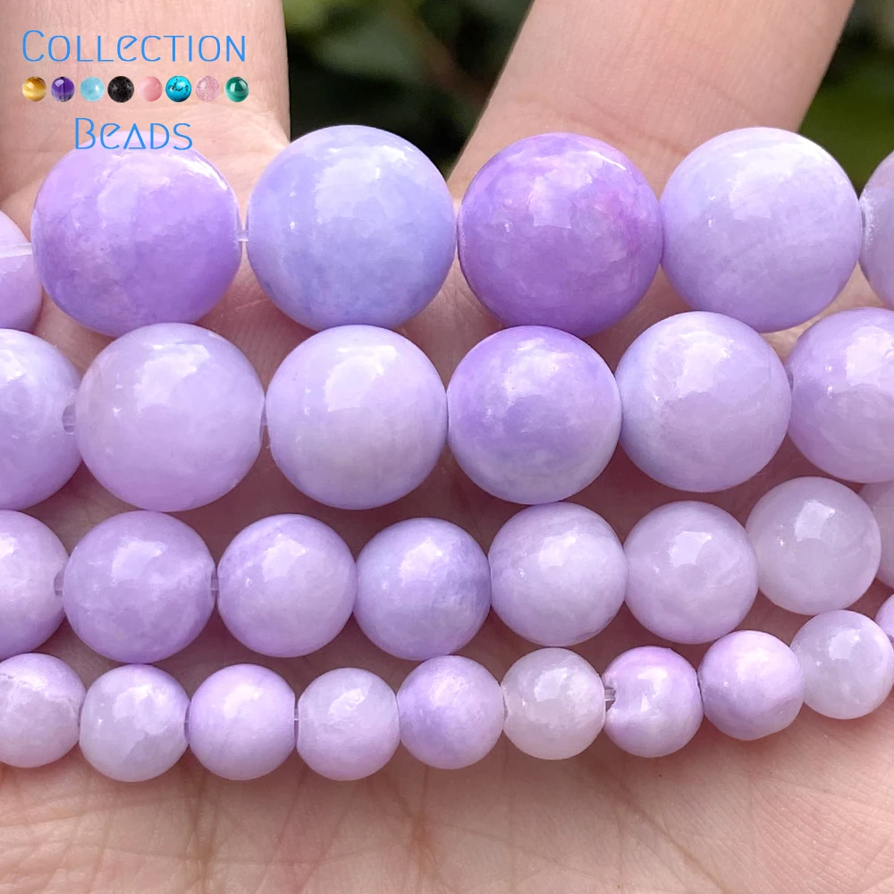6/8/10/12mm Natural Stone Light Purple Angelite Jades Round Spacer Loose Beads For Jewelry Making DIY Bracelets Accessories 15'