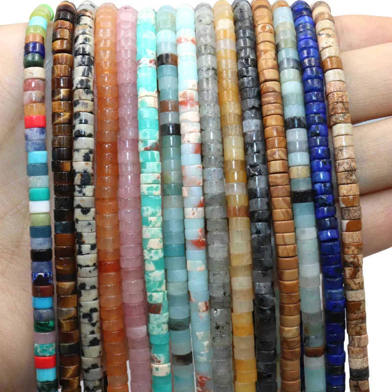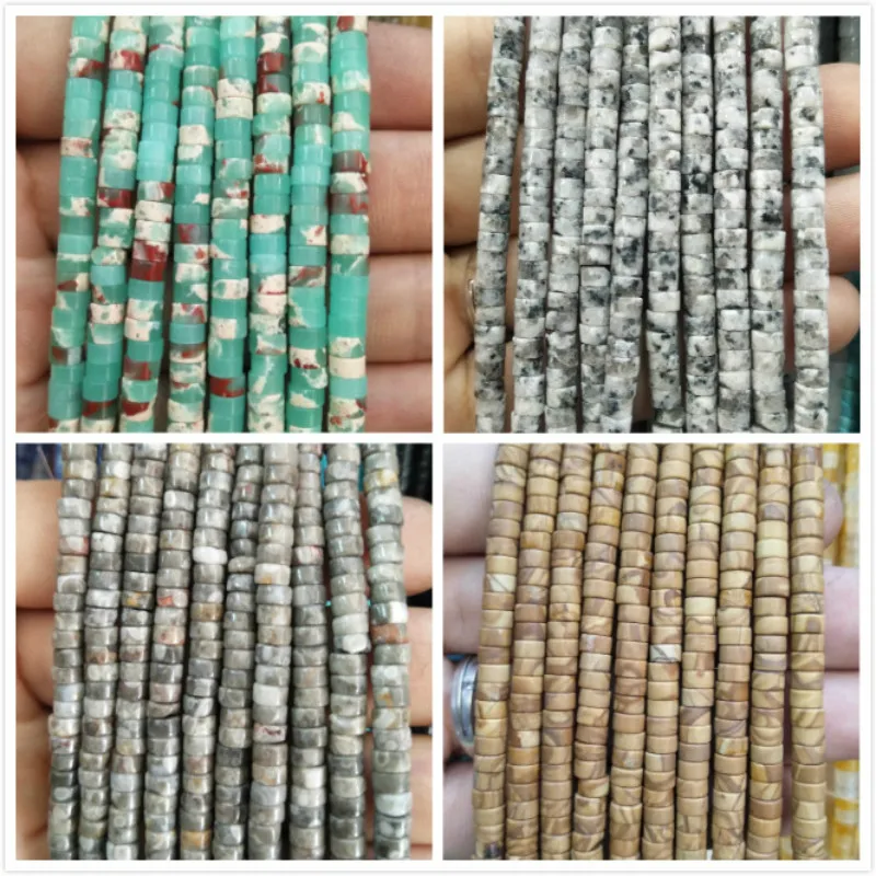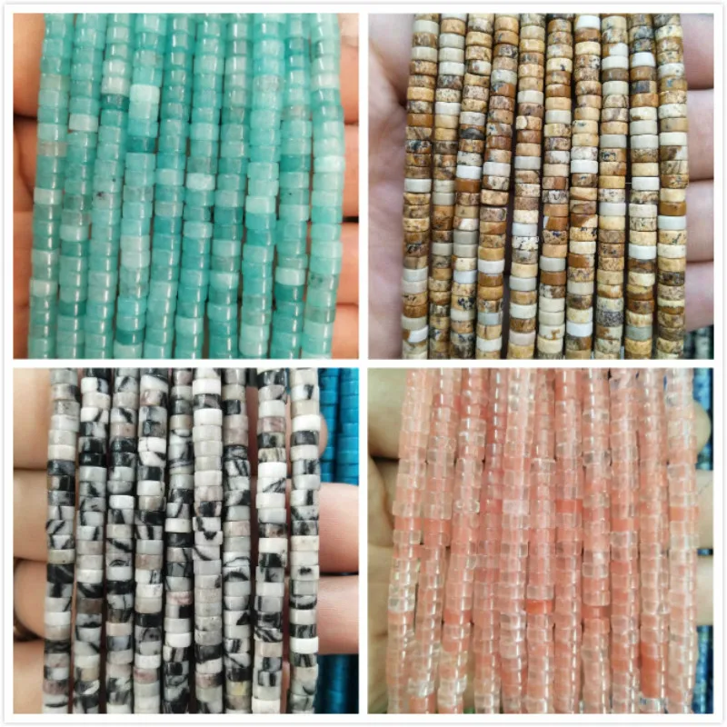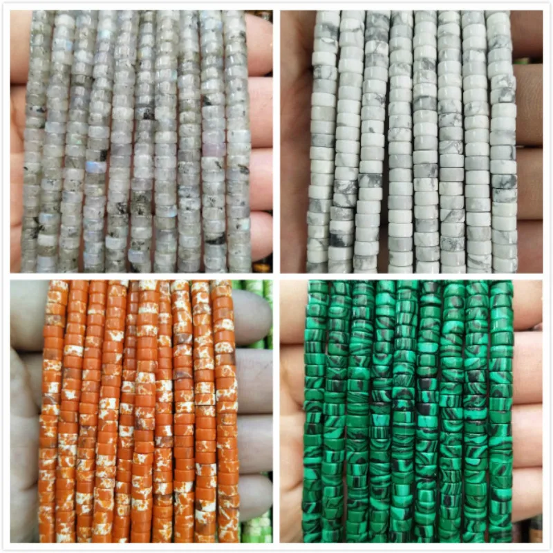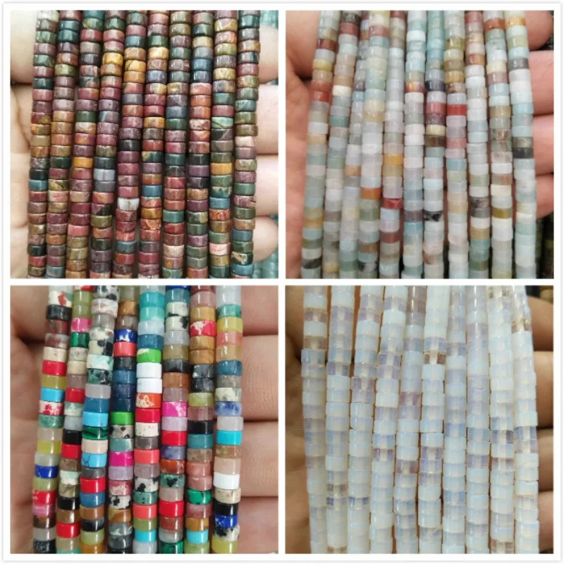 2x4mm Turquoises Agates Jades Spacer Flat Round Natural Stone Loose Beads For Jewelry Making DIY Bracelet Necklace Earrings