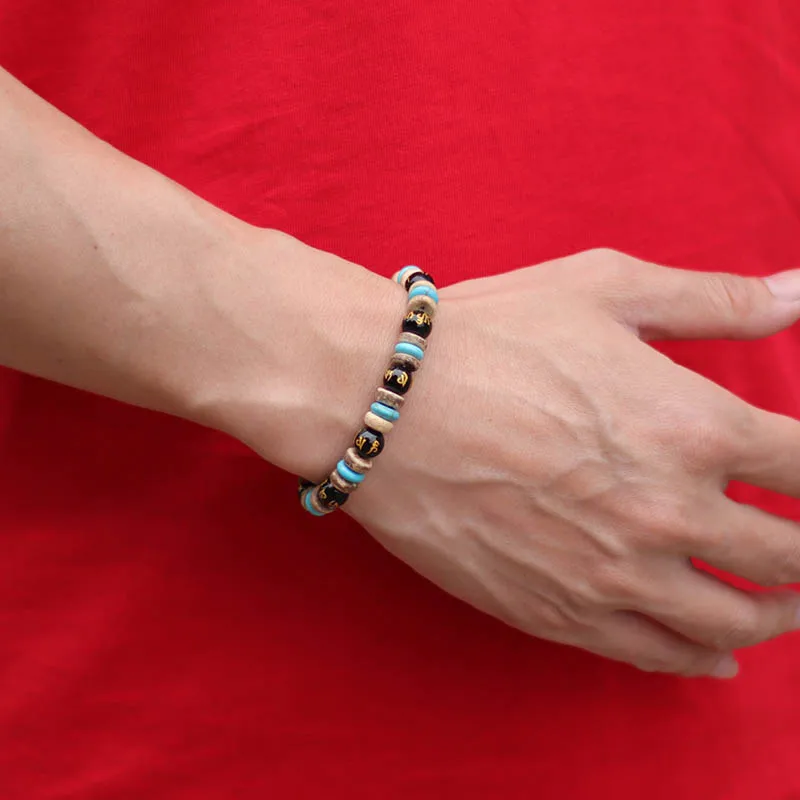 The color of this bracelet is as pictured, featuring a mix of natural stone colors and wood tones. This versatile color palette makes it easy to pair with any outfit, whether it's casual or formal.