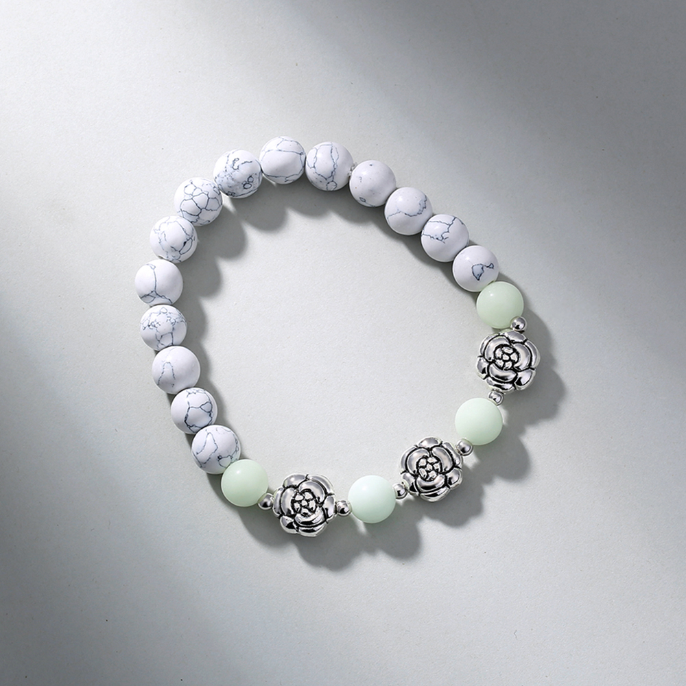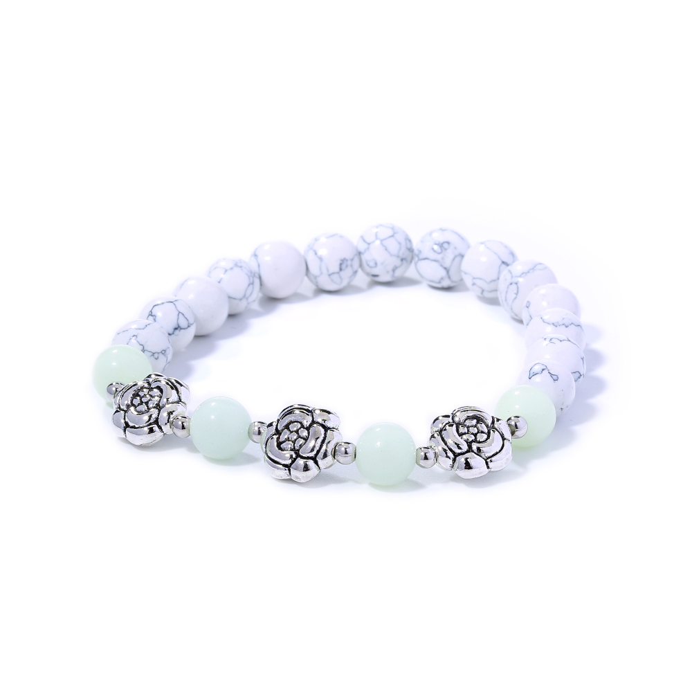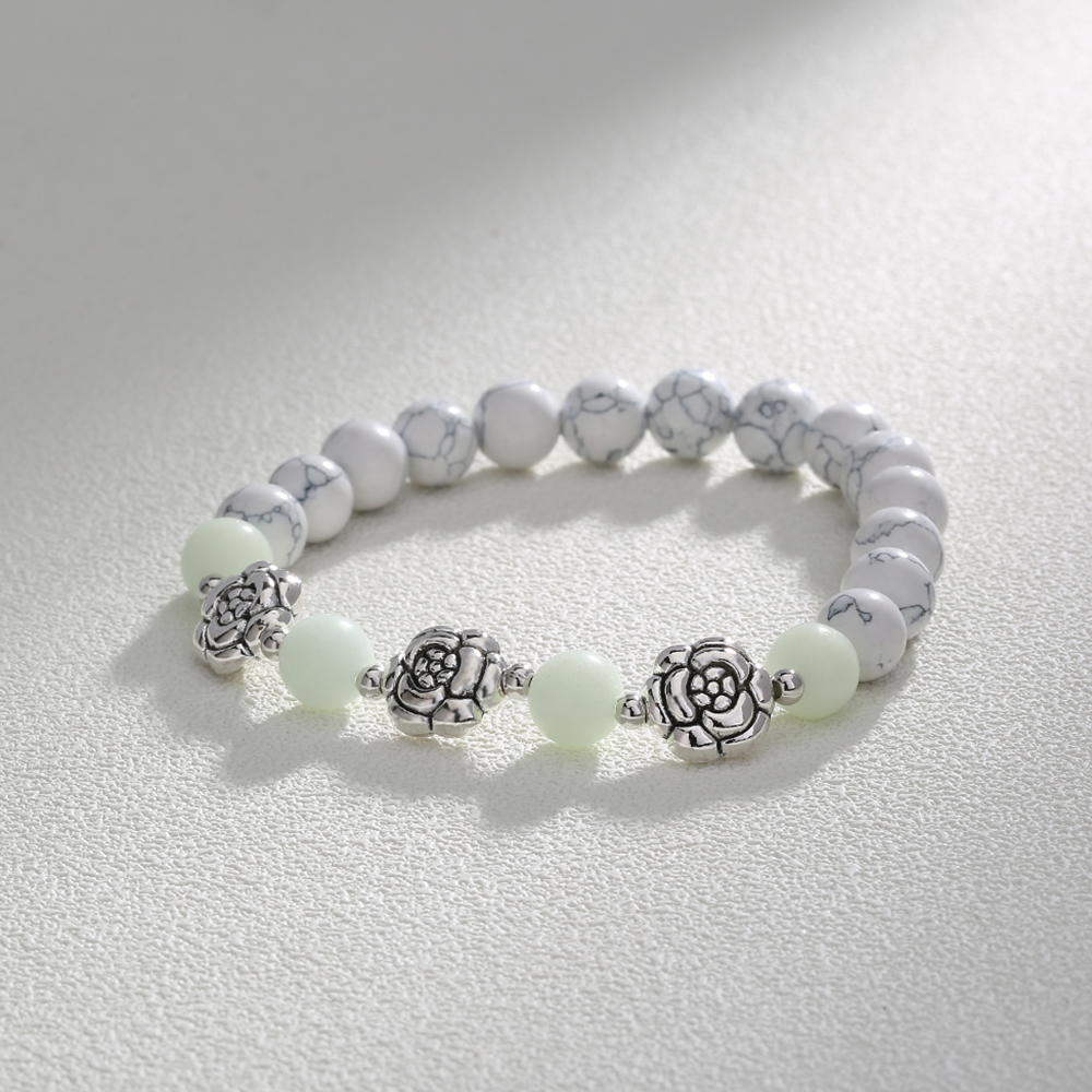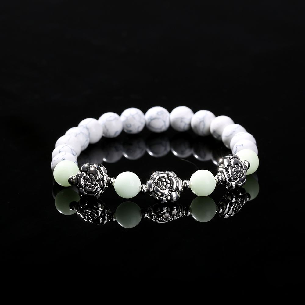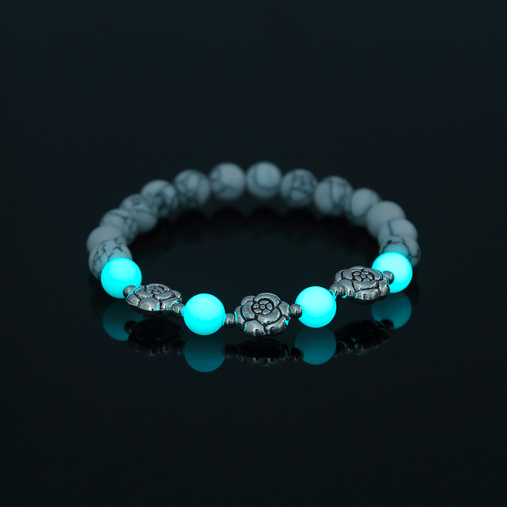 White Turquoise Rose Metal Pendant Luminous Bead Bracelet