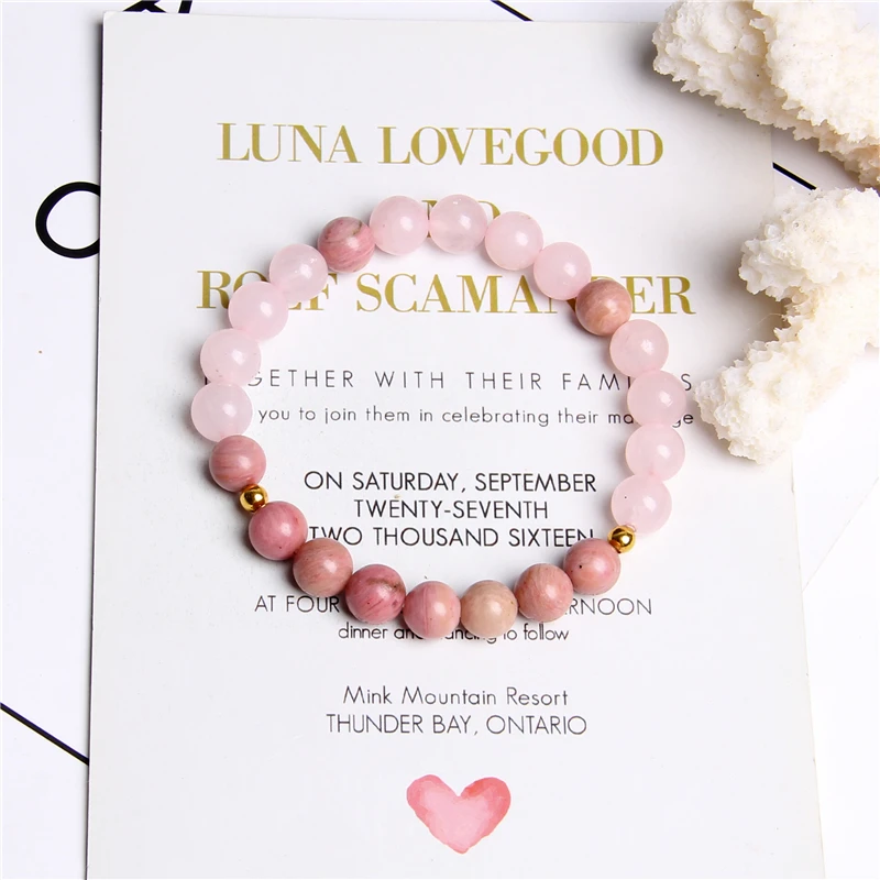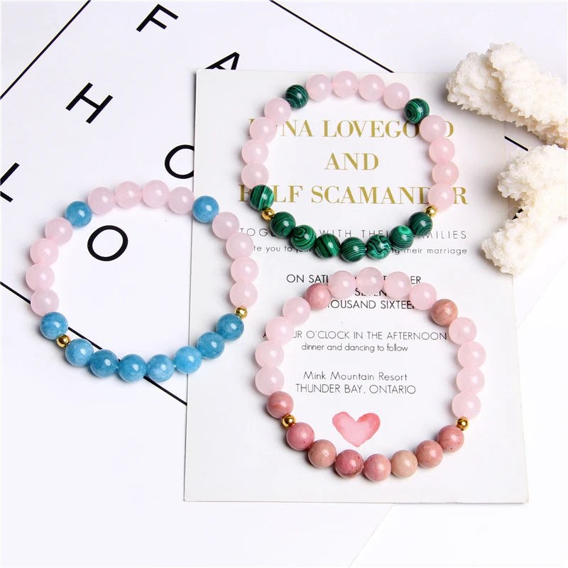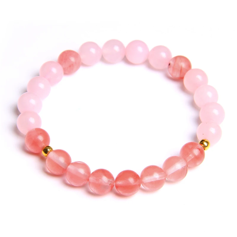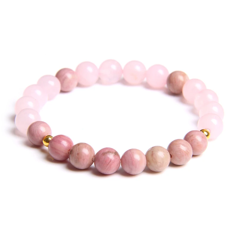 Women Elastic Bracelet Natural Pink Quartzs Stone Beads Bracelets For Women Girl Pearl Rhodochrosite Bangles Red Agates Jewelry